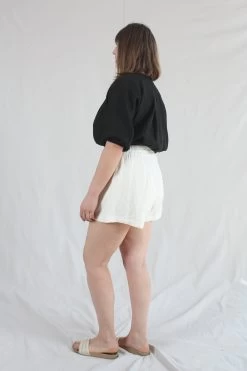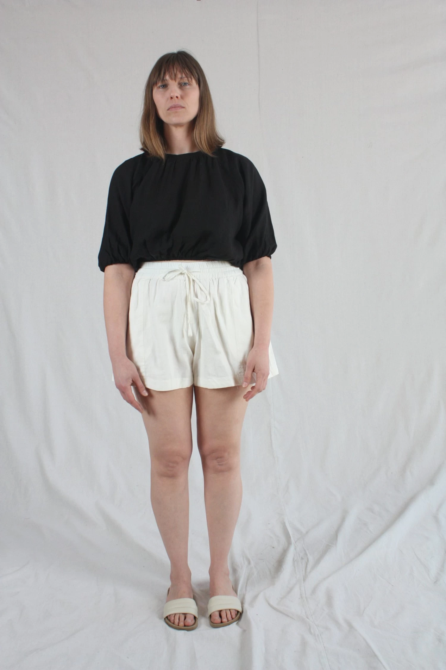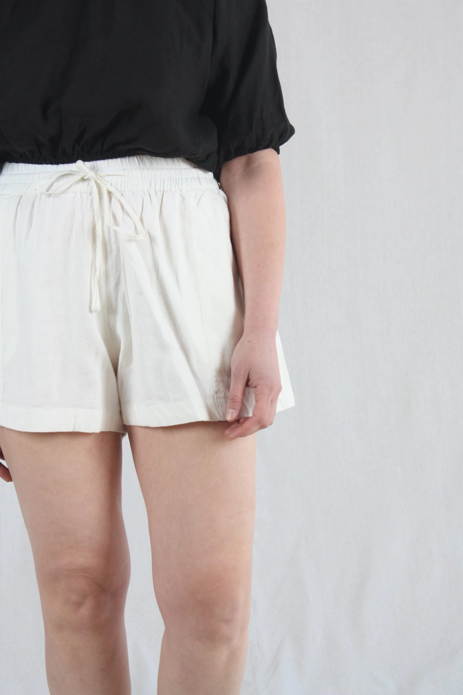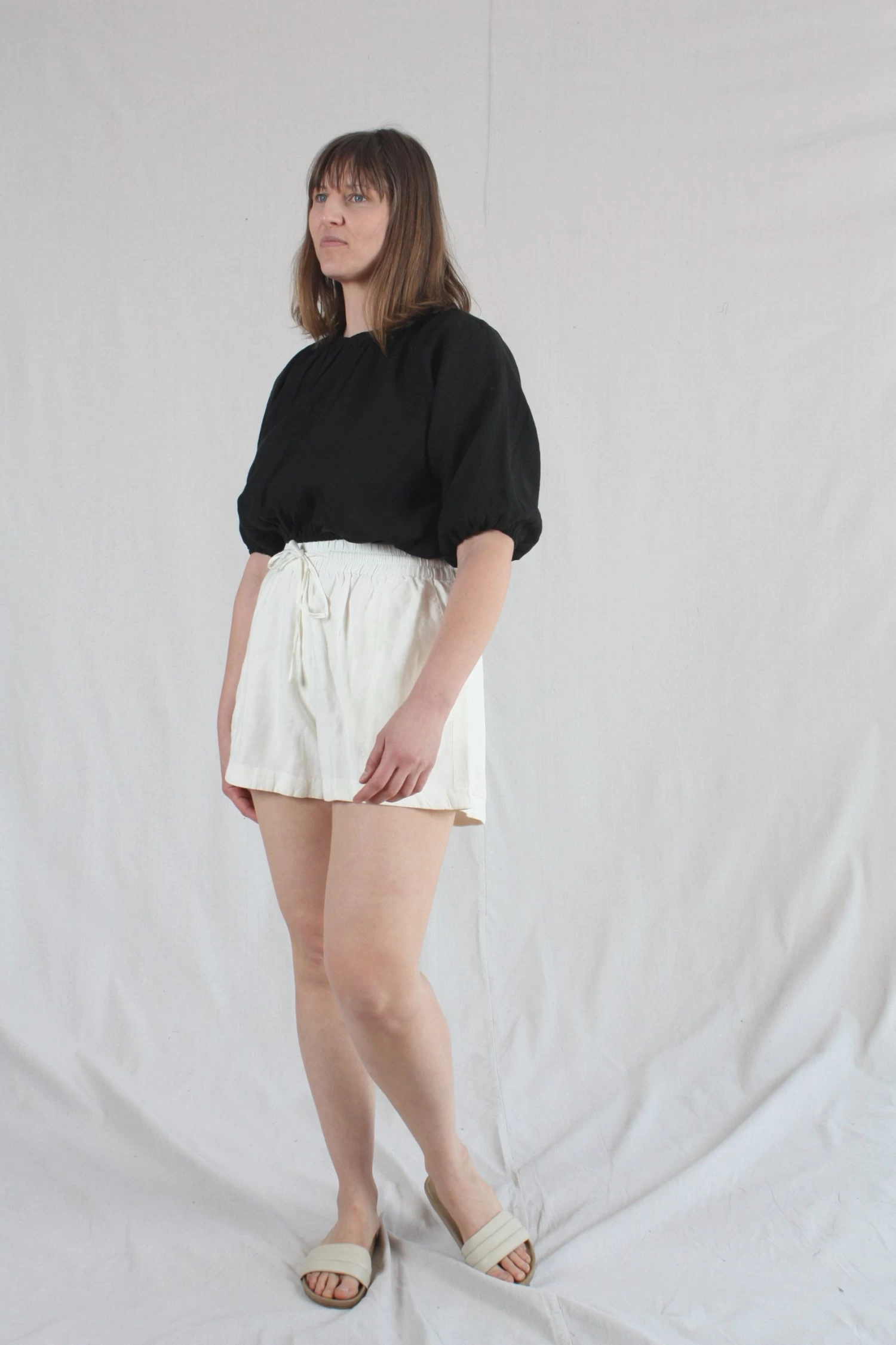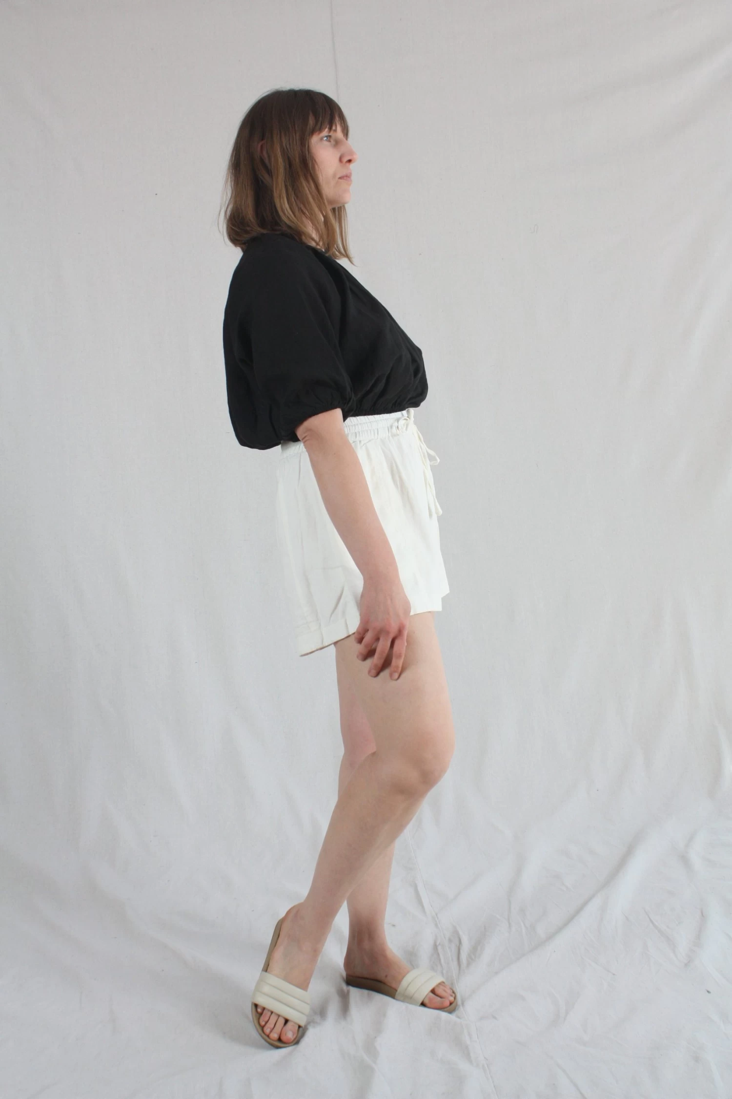 The Trail Short in a washed organic linen, crafted to wear easily from poolside to dinner table. With an elastic waistband, self-tie drawstring, roomy side-pockets and a relaxed fit, the Trail Shorts are an ideal warm-weather staple.