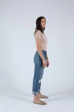 These high-rise and straight-leg cotton denim jeans hold you in, but ease up in all the right places with repeated wear. Each pair is given a quick wash to shake out some of the initial stiffness of raw denim.