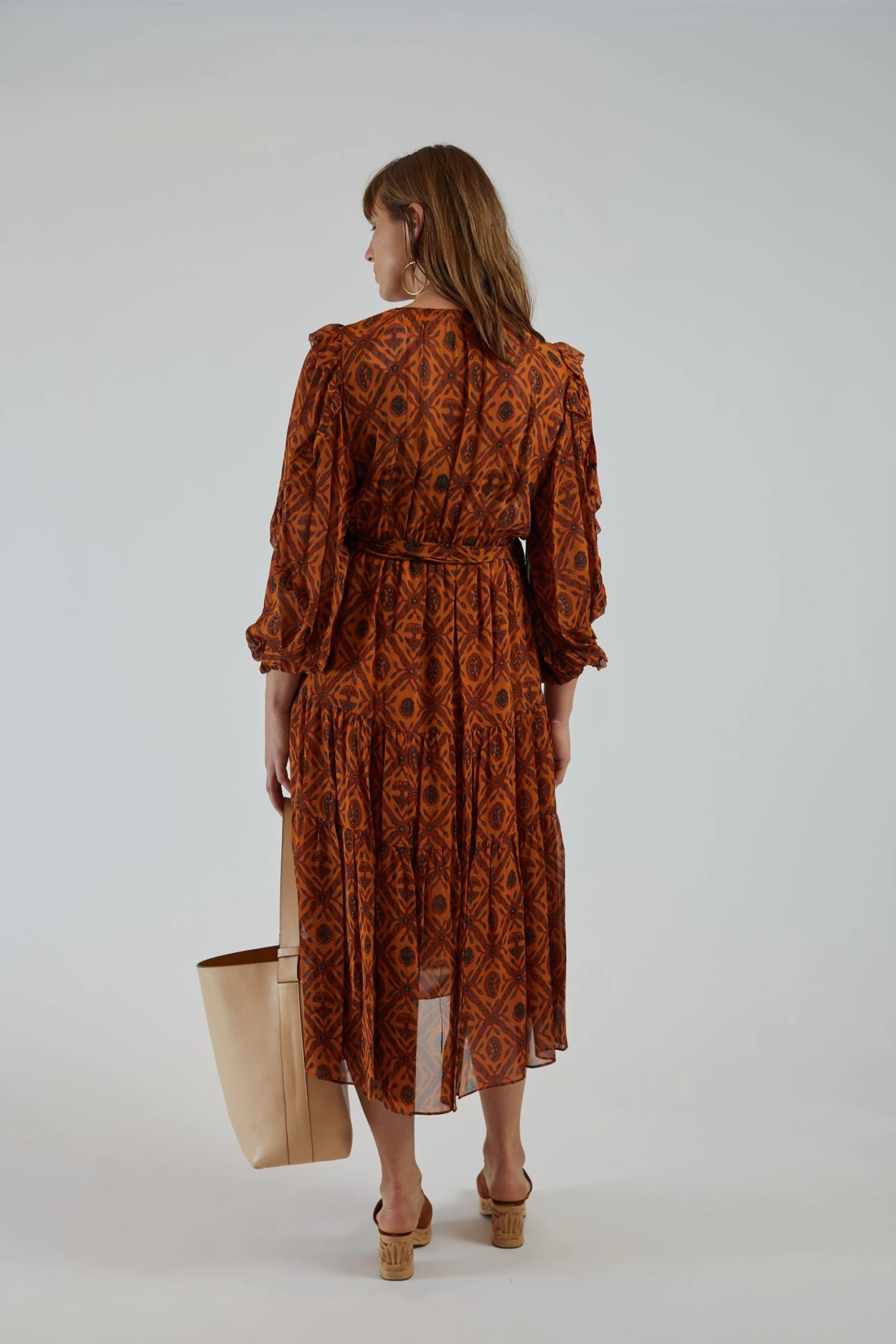 The Aliya Dress is an Ulla Johnson classic silhouette that has been crafted from our graphic diamond printed silk in a bold fuchsia color. This stunning midi length style is adorned with ruffle detailing and features a removable belt and self-tie neckline. Lined Skirt.
