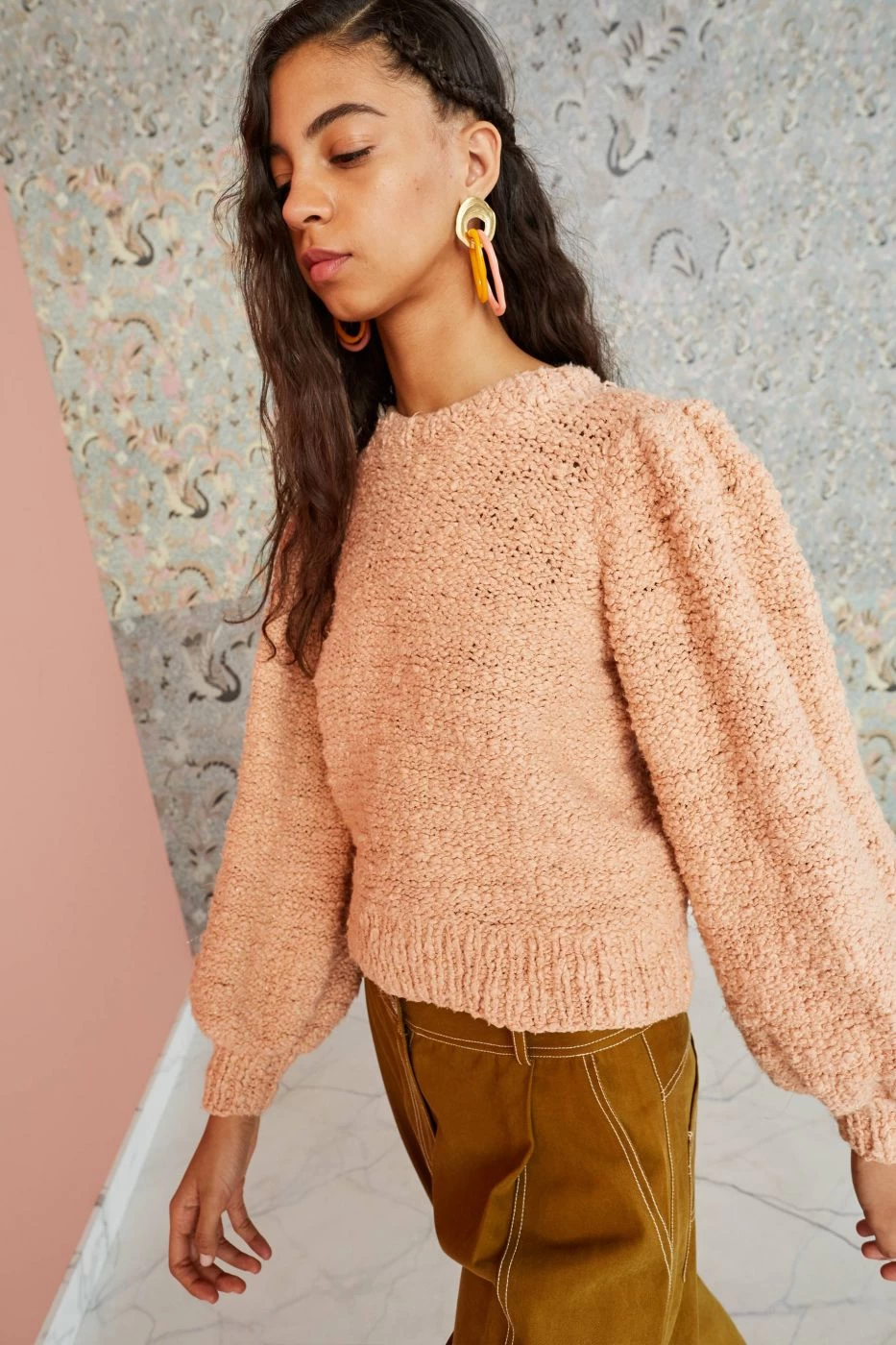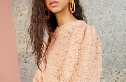 The Isolde Pullover is made from ultra soft cotton boucle that has been handknit with lurex detailing. Pullover style featuring ribbed hem and cuffs and full sleeves.