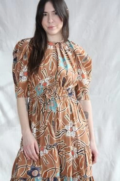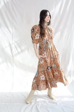The Zeenat Dress is cut in a silk taffeta, decorated with large scale flowers. This signature Ulla Johnson midi-length silhouette features subtle puff sleeves, gathered neckline and a flattering smocked waist with double bow ties. This wear-everywhere frock is the perfect printed moment for the warmer months.Â